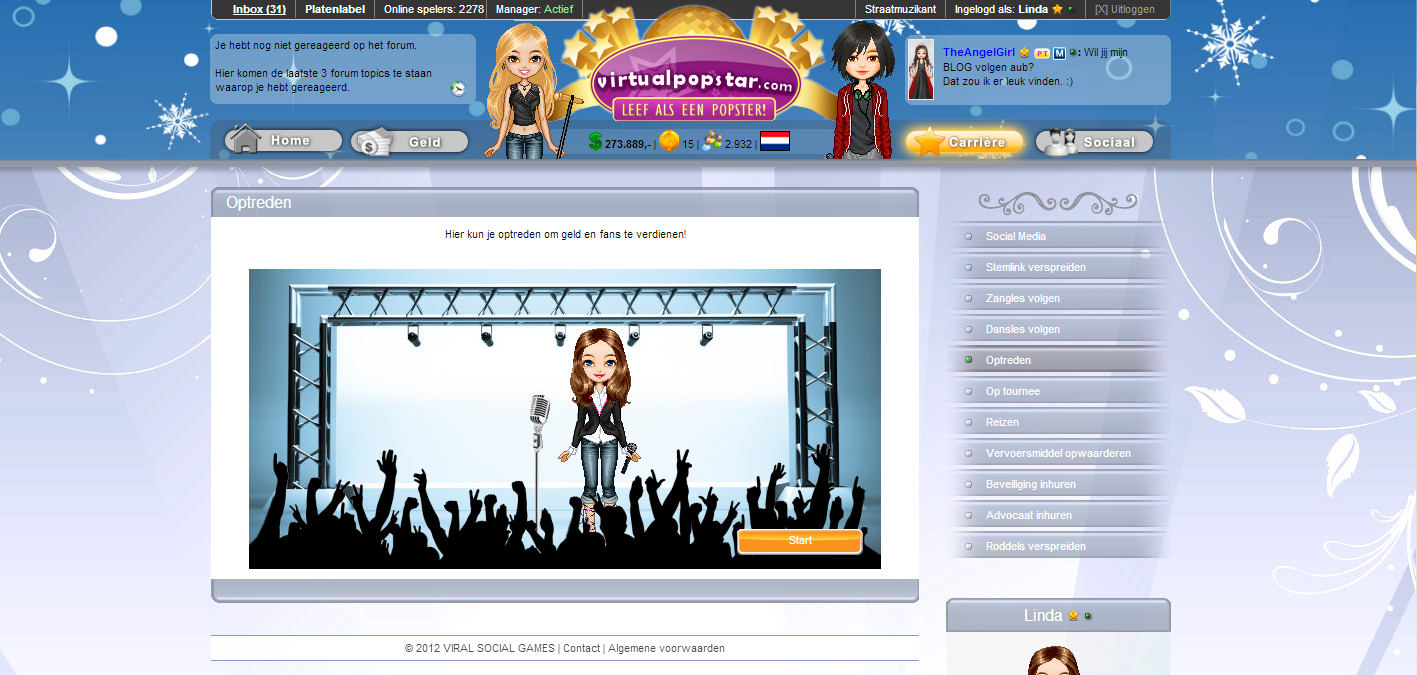 Op Virtual Popstar worden dagelijks vele vriendschappen gesloten dus geef ook jouw sociale leven een boost, chat mee op het forum en blijf op de hoogte van de nieuwste trends.